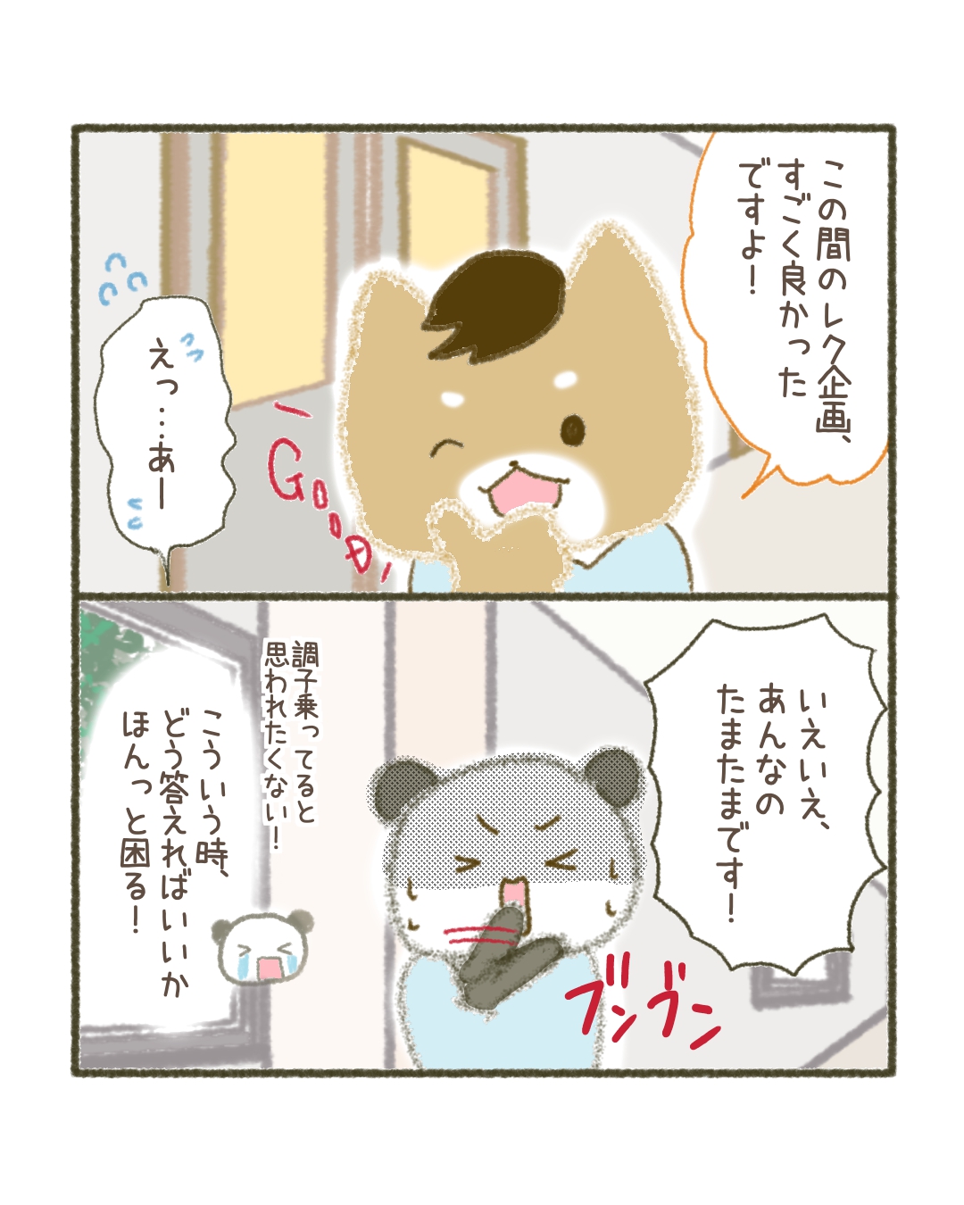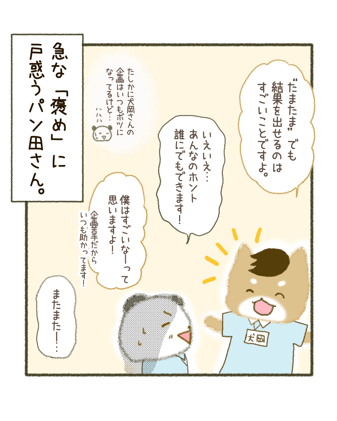【パン田さん@漫画】褒められたときの戸惑い〜「調子に乗っちゃいけない…」「この程度で…」